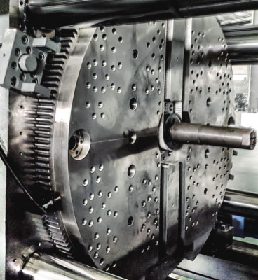 轉(zhuǎn)盤完成停止位置,在關(guān)模之前盤面模具定位孔再確認(rèn)以保護(hù)模具安全不受損。